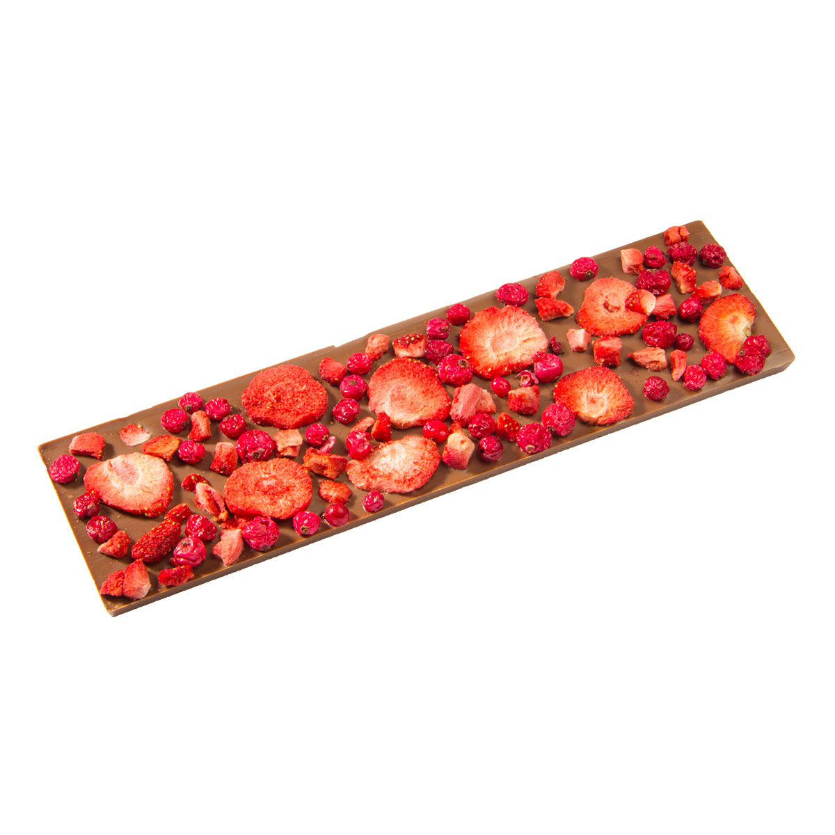 Tejcsokoládé liofilizált eperrel és liofilizált piros ribizlivel