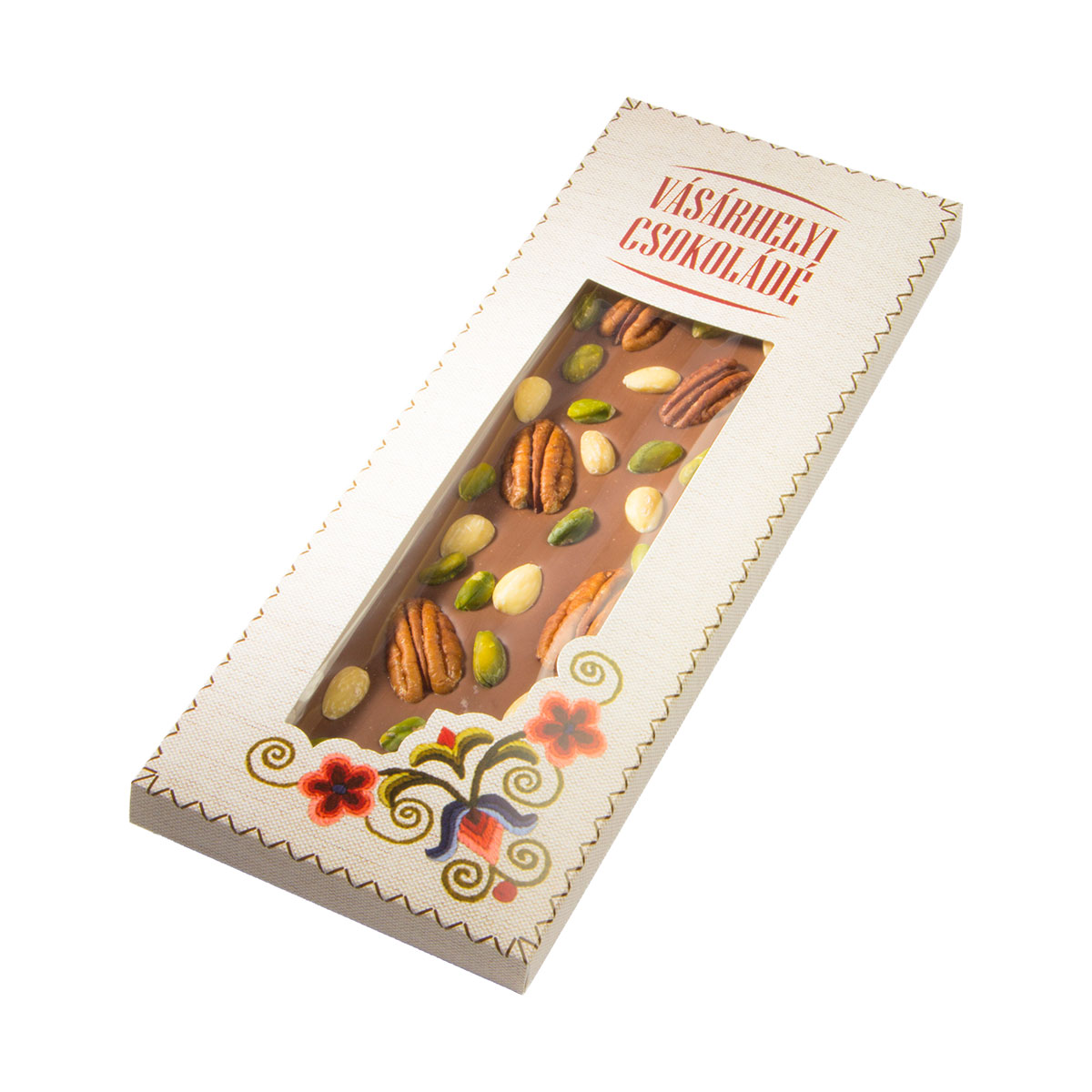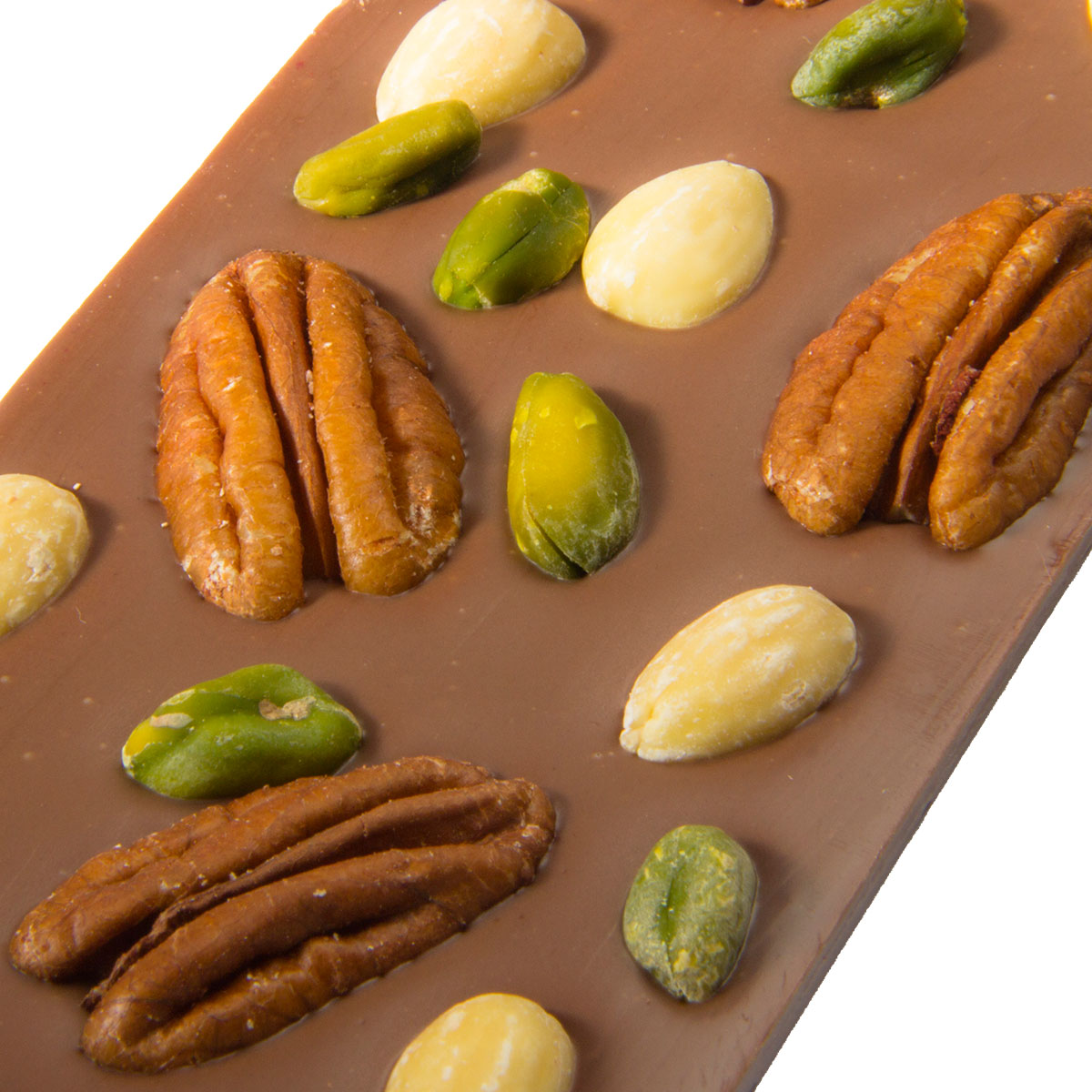 Tejcsokoládé pekándióval, mandulával és pisztáciával